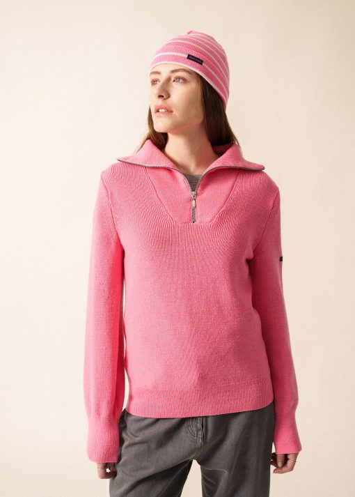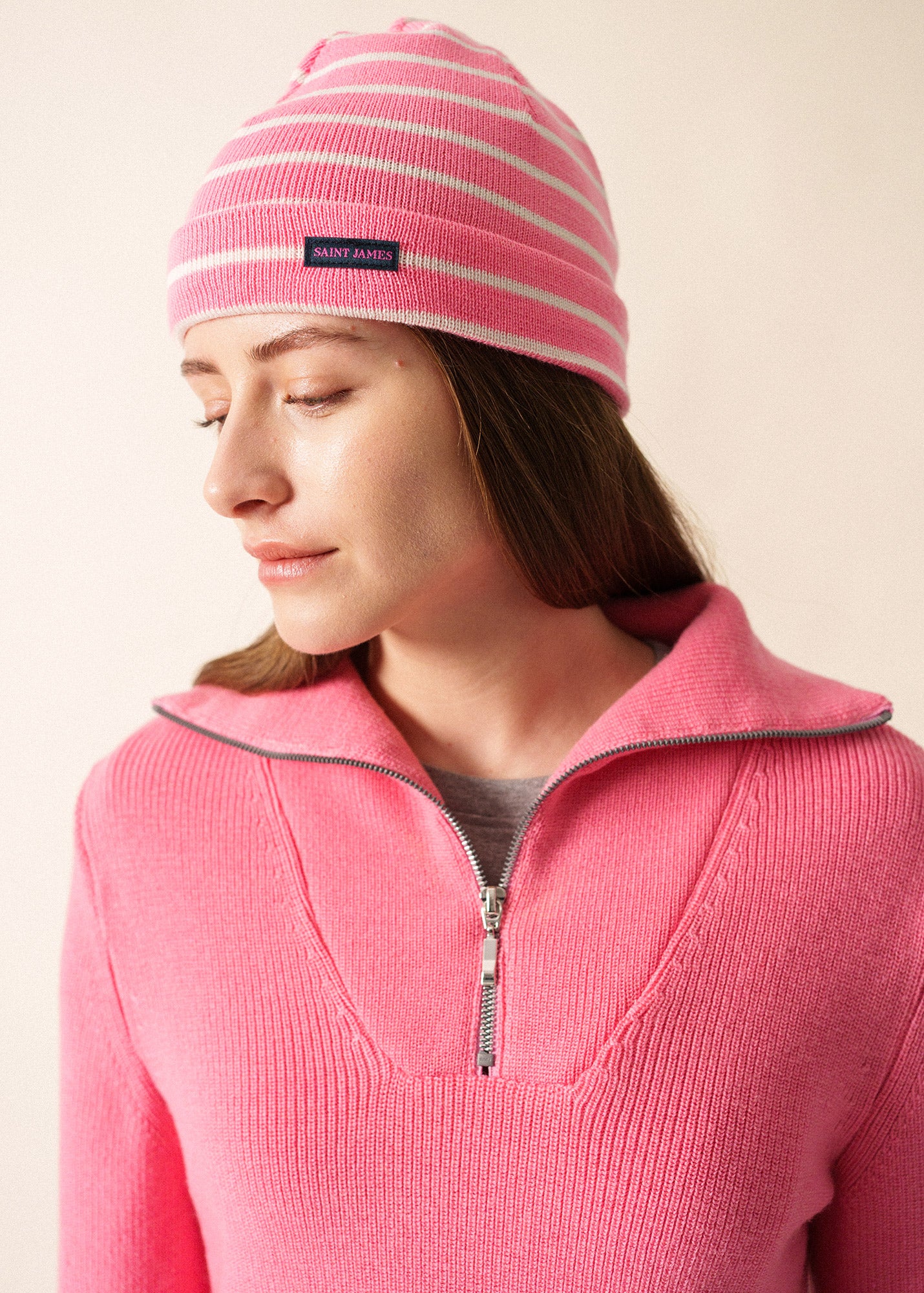 Le modèle Cartier reprend la forme emblématique du bonnet de quart des marins, en uni ou avec des rayures de bord de mer. Il se distingue par sa composition mixte, laquelle apporte un contact plus confortable et permet de faciliter l’entretien du bonnet.