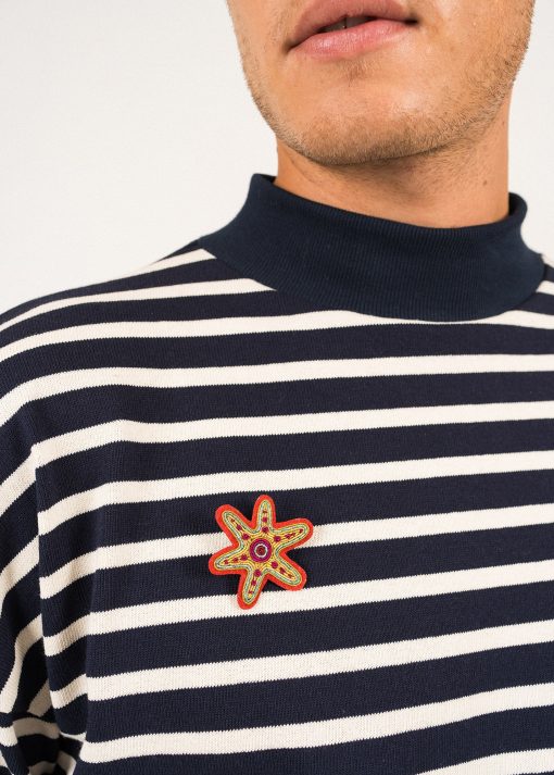 Colorée et ludique, cette broche brodée imaginée en collaboration avec Macon & Lesquoy ajoutera une touche originale à vos pulls en laine et marinières SAINT JAMES. Brodée à la main, chaque pièce est unique.