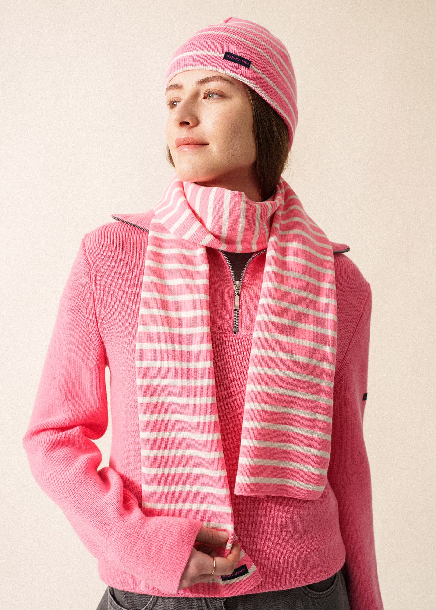 Destiné aux frileux souhaitant partir à la conquête de l’hiver, le modèle Dugay, avec sa composition mixte, propose une alternative au 100% laine, chaud et plus facile d’entretien. Dans sa version rayée, l’allure se veut marine ou graphique au rythme des associations, intemporelle, elle s’adapte à toute la famille.