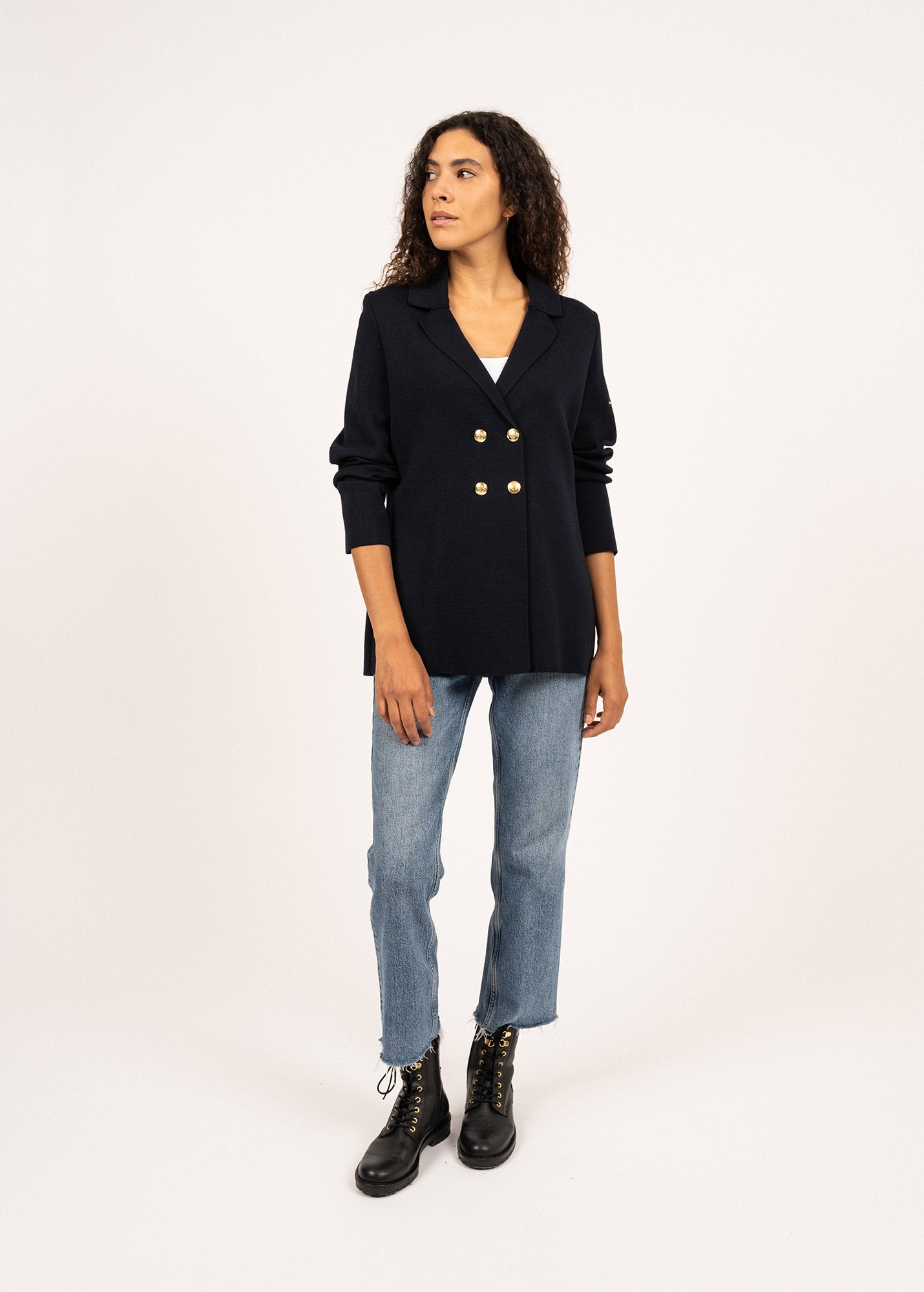 A la croisée de notre héritage et de la modernité, le blazer Charente est un blazer en laine, tricoté en point de Rome dans nos Ateliers, à Saint-James. On aime l’association de sa maille douce et confortable avec l’élégance du blazer. Une pièce moderne et chic.- Blazer