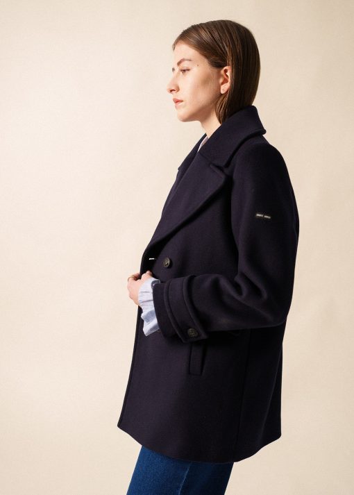 Emblématique de l’élégance maritime, le Caban Ste Romy se distingue par son drap de laine offrant chaleur et tenue impeccable. Ses boutons ancre marine, fabriqués à partir de coquilles Saint Jacques recyclées, ajoute une touche unique et responsable à la pièce. La doublure jacquard est ornée de la signature SAINT JAMES, tandis qu’une poche intérieure est disponible pour ranger vos effets personnels.