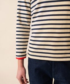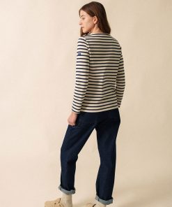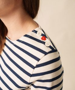 Inspirée par le style des marins, cette marinière en jersey lourd de coton possède un boutonnage à l’épaule. Elle fusionne l’élégance de la marinière classique avec le caractère chaleureux de nos pulls marins. Faisant partie de la capsule Amour, elle possède aussi un bouton en forme de cœur sur l’épaule.