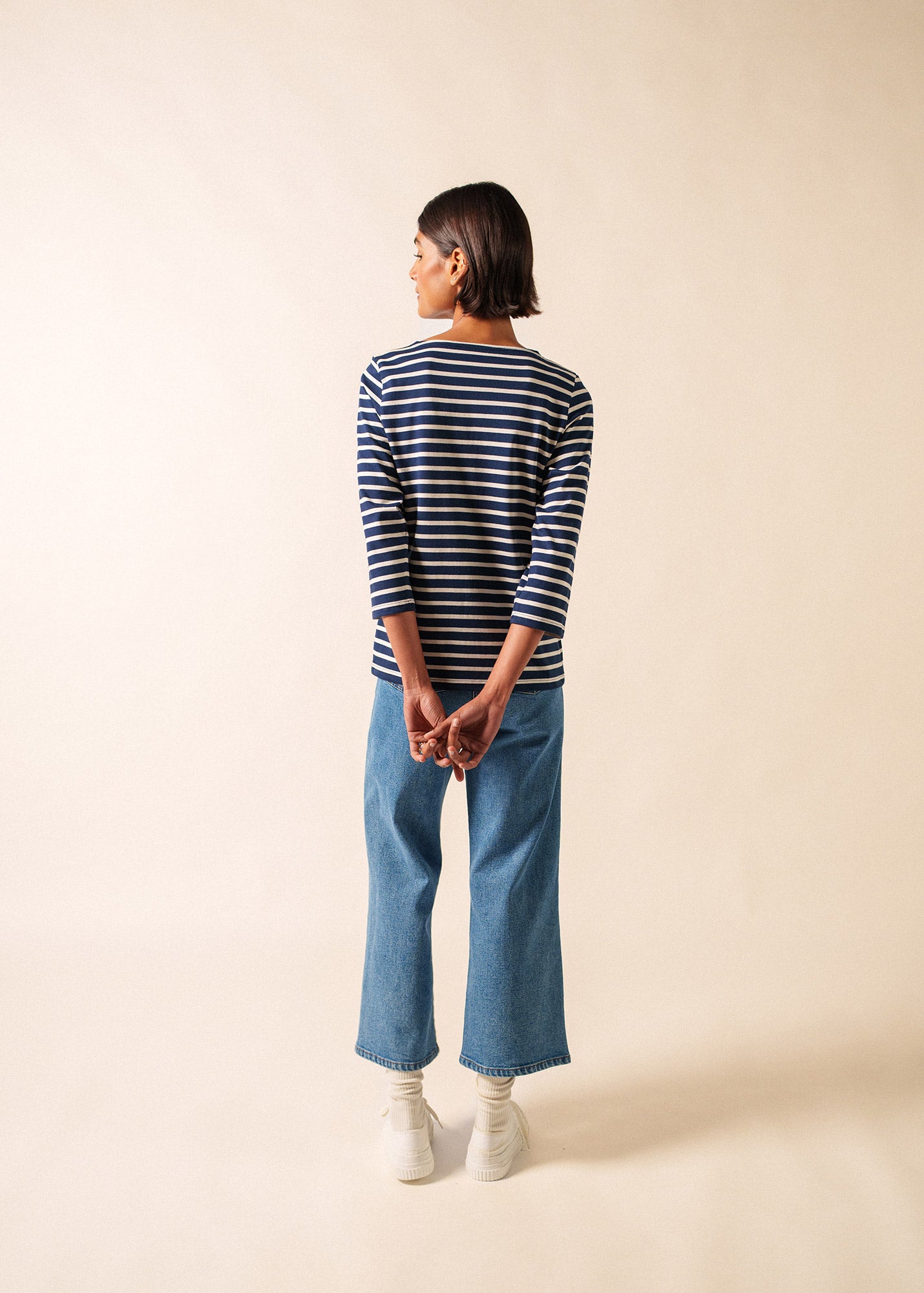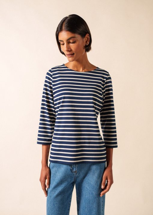 Iconique, la marinière se décline en version manches 3/4, parfaite lorsque les journées se réchauffent et que l’été arrive ! Confectionné dans le même jersey de coton léger que nos iconiques Minquiers et Minquidame, le modèle Galathée est doux, confortable et respirant.- Marinière