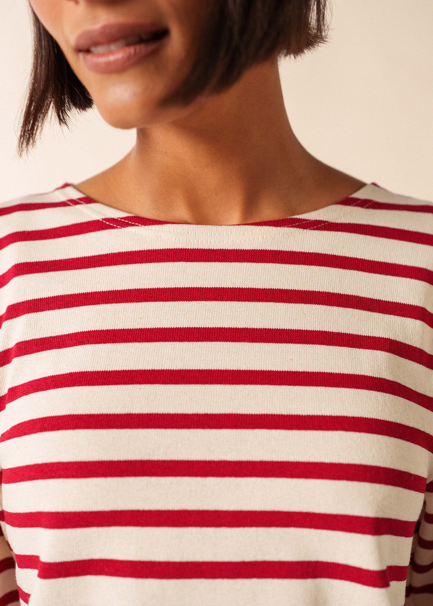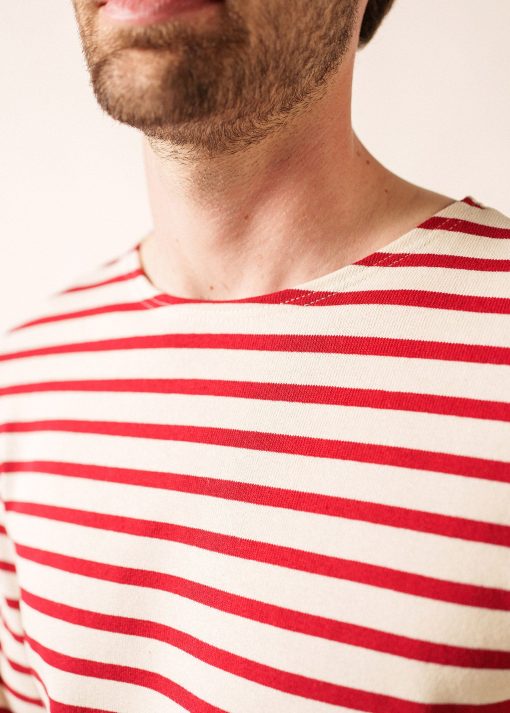 Avec son jersey lourd en fil cardé, la matière affirme son authenticité. Fort de cette identité, le basique se colore aux teintes de saison et se réinvente au fil des années.- Marinière