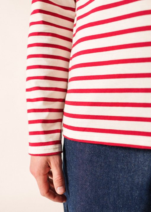 Intemporelle, graphique et décontractée, la marinière signe un état d’esprit, un art de vivre à la française. Léger, le modèle Minquiers moderne se transpose à différents styles au rythme des saisons.- Marinière