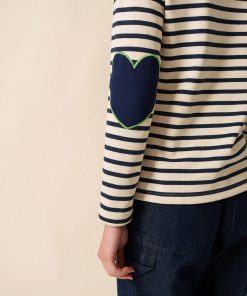 Confectionnée dans nos ateliers en jersey de coton lourd, la Marinière Vaujany reprend tous les codes de notre marinière iconique et se démarque par le travail de ses coudières en forme de cœur. On note également les subtils détails contrastés rouges à l’intérieur du col et en bas de manches. Une marinière idéale pour les amoureux de nos rayures.