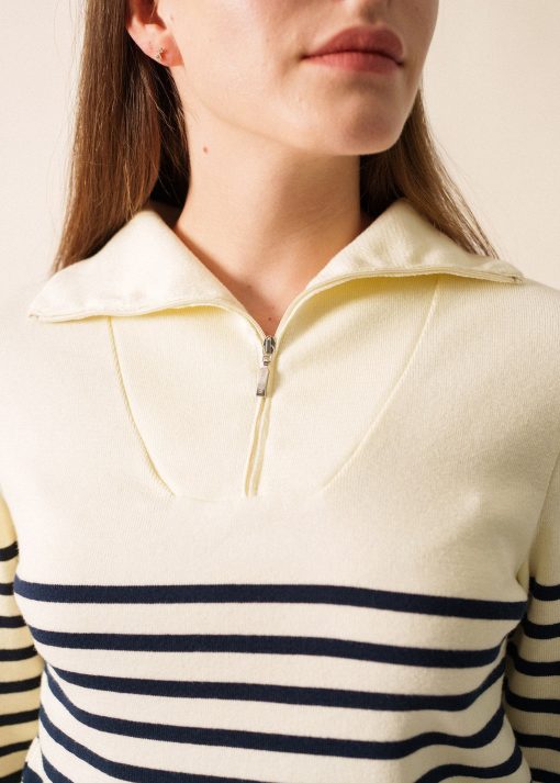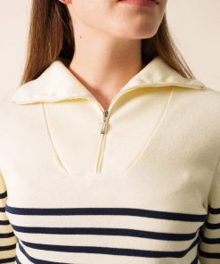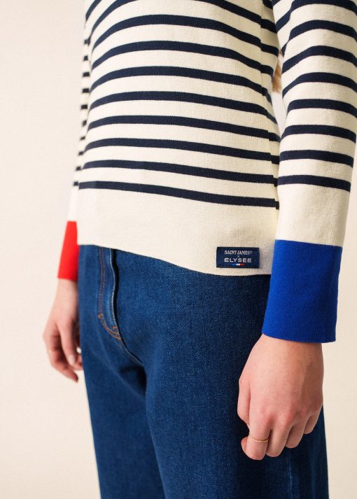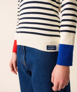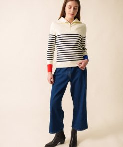 Avec son style décontracté, le pull camionneur rayé Passerelle se positionne comme un essentiel de votre dressing pour l’hiver. Conçu dans le cadre de notre collaboration avec la boutique officielle de l’Elysée, il réutilise les couleurs du drapeau français en bas de manche, en rouge à droite, en en bleu à gauche. Fabriqué en côte 1×1 en coton, et confectionné avec soin dans nos Ateliers à Saint-James.