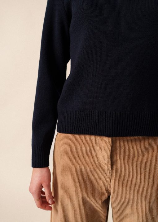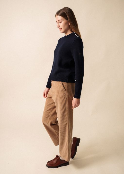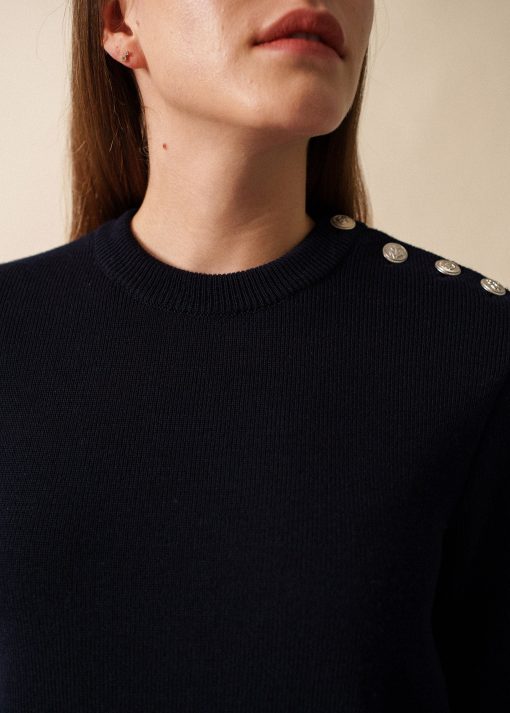 Inspiré par les embruns de l’océan et la douceur des matinées d’automne, le pull marin Cancale arrive en version féminine. Il est confectionné avec le fil emblématique de notre modèle iconique Marée et tricoté en côte 1×1 pour une texture chaude et confortable. Ce modèle se distingue également par ses boutons ancre argentés, subtilement placés sur l’épaule, apportant une touche maritime unique à la pièce.