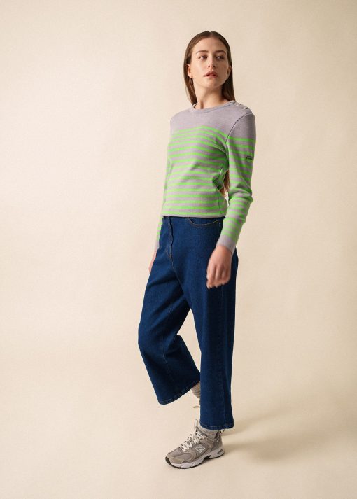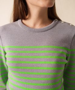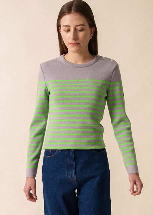 Pièce incontournable du vestiaire féminin SAINT JAMES, le pull Marée est la version féminine de nos iconiques pulls marins. Tricoté dans nos Ateliers dans une laine douce et fine, il est parfait pour celles cherchant à allier confort, chaleur et élégance. Intemporel, il reprend les codes centenaires de nos pulls marins : un col rond remaillé, un tricotage en côte 1×1, un boutonnage à l’épaule, une composition 100% laine vierge et une coupe près du corps, pour conserver la chaleur. Versatile, il sera le meilleur allié de toutes vos tenues, habillées ou casual, classiques ou originales.