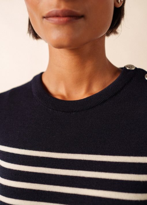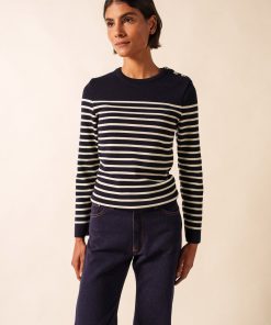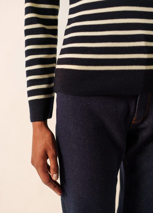 Saint James Femme Men’s Pull Marin Rayé Marée | Navy & Ecume