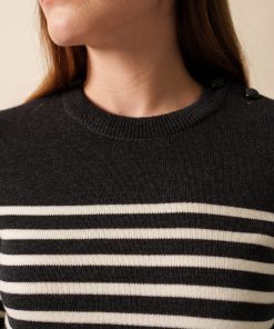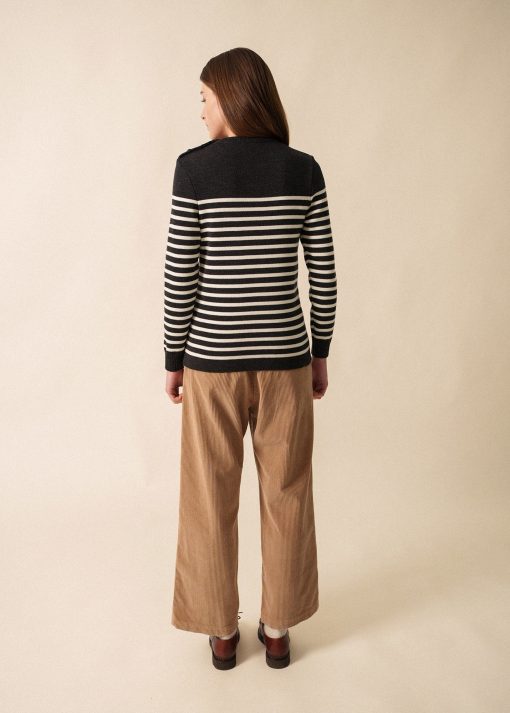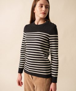 Version féminine de notre intemporel Rochefort, ce pull marin en laine est tricoté dans nos Ateliers, à Saint-James. Pour plus de confort, il reprend le fit de notre pull Brégançon, dans la laine douce du Rochefort. A l’épaule, notre classique boutonnage se pare de boutons en résine imitation corne.