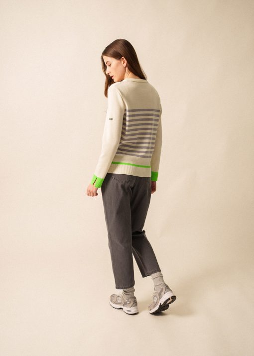 Le charme du pull rayé Evian se révèle à travers une conception soignée dans nos ateliers à Saint-James. Fabriqué en jersey de laine mélangée, il utilise le fil de notre pull marin Marée. Ses ouvertures sur les côtés des manches et du bas du corps permettent une aisance plus naturelle. Idéal pour un style à la fois simple et élégant, qui reflète notre savoir-faire français.