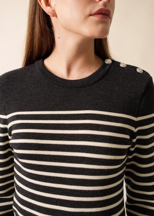 Saint James Femme Men’s Robe Pull Rayée Grande Marée | Anthracite & Ecume