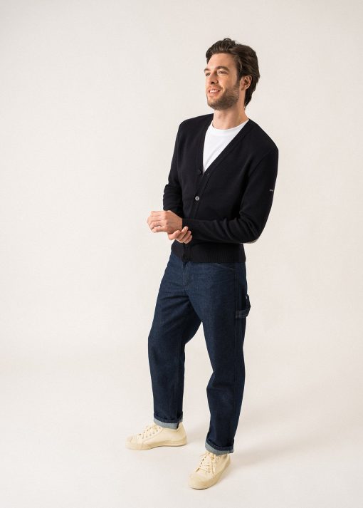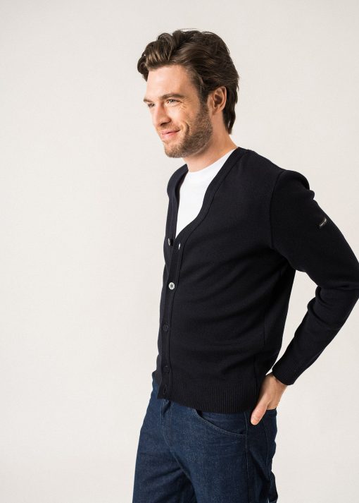Saint James Homme Men’s Cardigan En Laine Equipage | Navy & Ecume