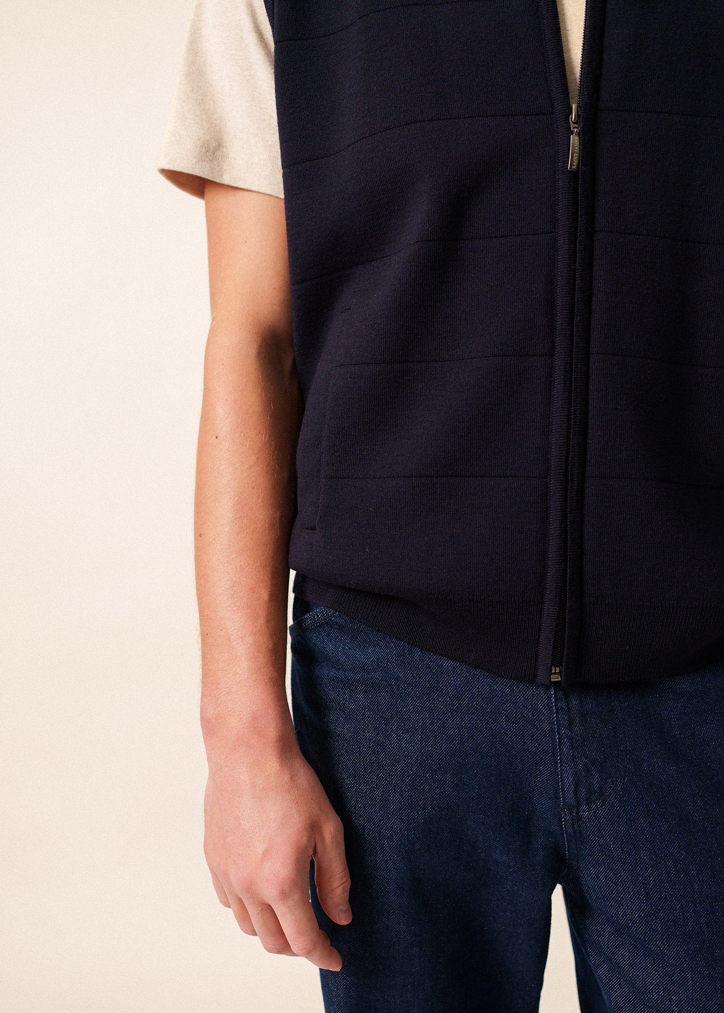 Pour affronter les journées fraîches d’automne, découvrez le gilet sans manches Verbier. Fabriqué en laine, il vous offre une douce chaleur sans vous alourdir. Le col en bord-côte remonte légèrement pour protéger votre cou des courants d’air. Parfait sous un manteau ou avec un simple pull, il vous accompagnera tout au long de la saison et s’accorde facilement avec toutes vos tenues.