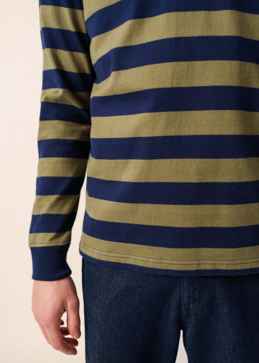 Un polo qui joue sur les codes classiques tout en ajoutant du caractère. Le polo rayé Mathis, en jersey de coton, associe confort et détails soignés. Son col boutonné et ses coudières en twill lui donnent une touche plus raffinée et originale, tandis que ses rayures rappellent notre héritage marin pour une allure aussi décontractée qu’élégante.