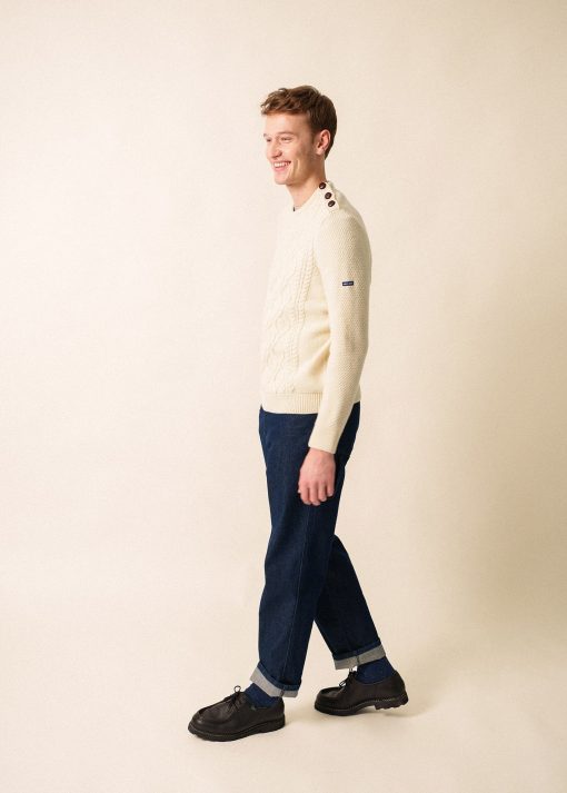 Le pull esprit marin Nyon avec son motif torsadé et sa laine épaisse est idéale pour affronter l’hiver. Tricoté en laine côte 1×1, ce pull épais vous tiendra chaud face à la saison hivernale. Ses boutons sont confectionnés en cuir pour donner plus de cachet à la pièce.