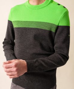 Inspiré par le design de notre iconique pull Bretagne mais dans une coupe confort, grâce à son bord-côtes en bas de vêtement, le pull Aquitaine est un pull en laine tricoté en côte 1×1. On aime son empiècement de couleur en haut de corps, qui lui apporte une touche originale et moderne.