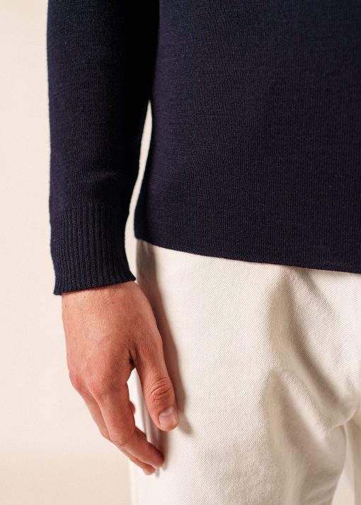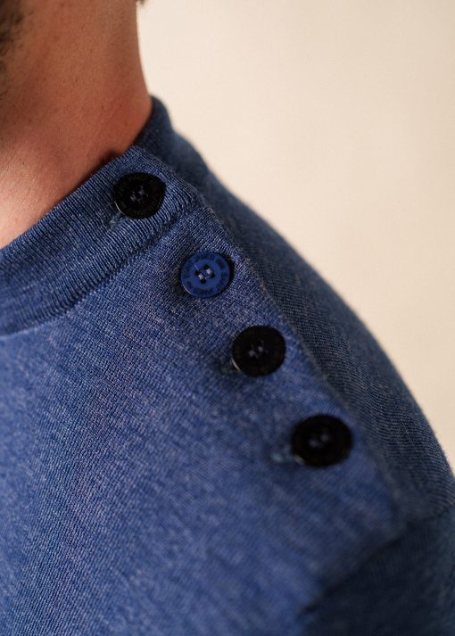 Le pull Bretagne est un pull marin, au design retravaillé. Il garde les composantes essentielles du pull marin traditionnel : un tricotage 100% laine en côte 1×1, un col rond remaillé, un boutonnage épaule pour faciliter l’enfilage. Mais en haut de corps, une bandes unie contrastée ajoute une touche d’originalité à ce modèle désormais iconiques, fabriqué dans nos Ateliers normands.- Pull marin