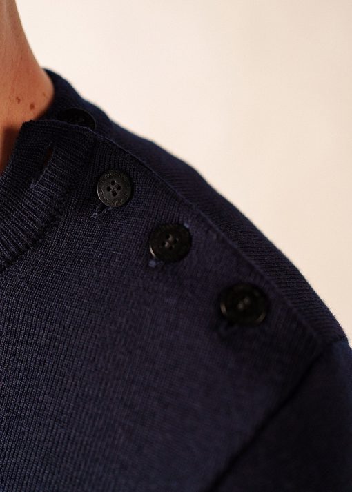 Avec le modèle Cancale, le pull marin normalement près du corps se fait plus confortable. Grâce à son bord-côtes en bas de vêtement, le volume est travaillé pour gagner en amplitude et habiller les différentes morphologies.- Pull marin