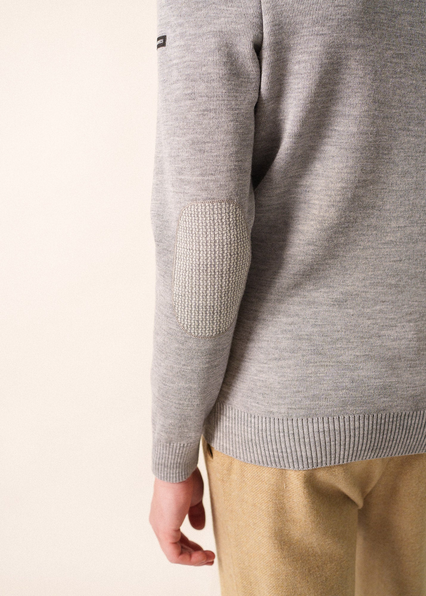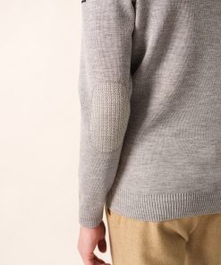– Détails jacquard en coudières et gravé sur un bouton