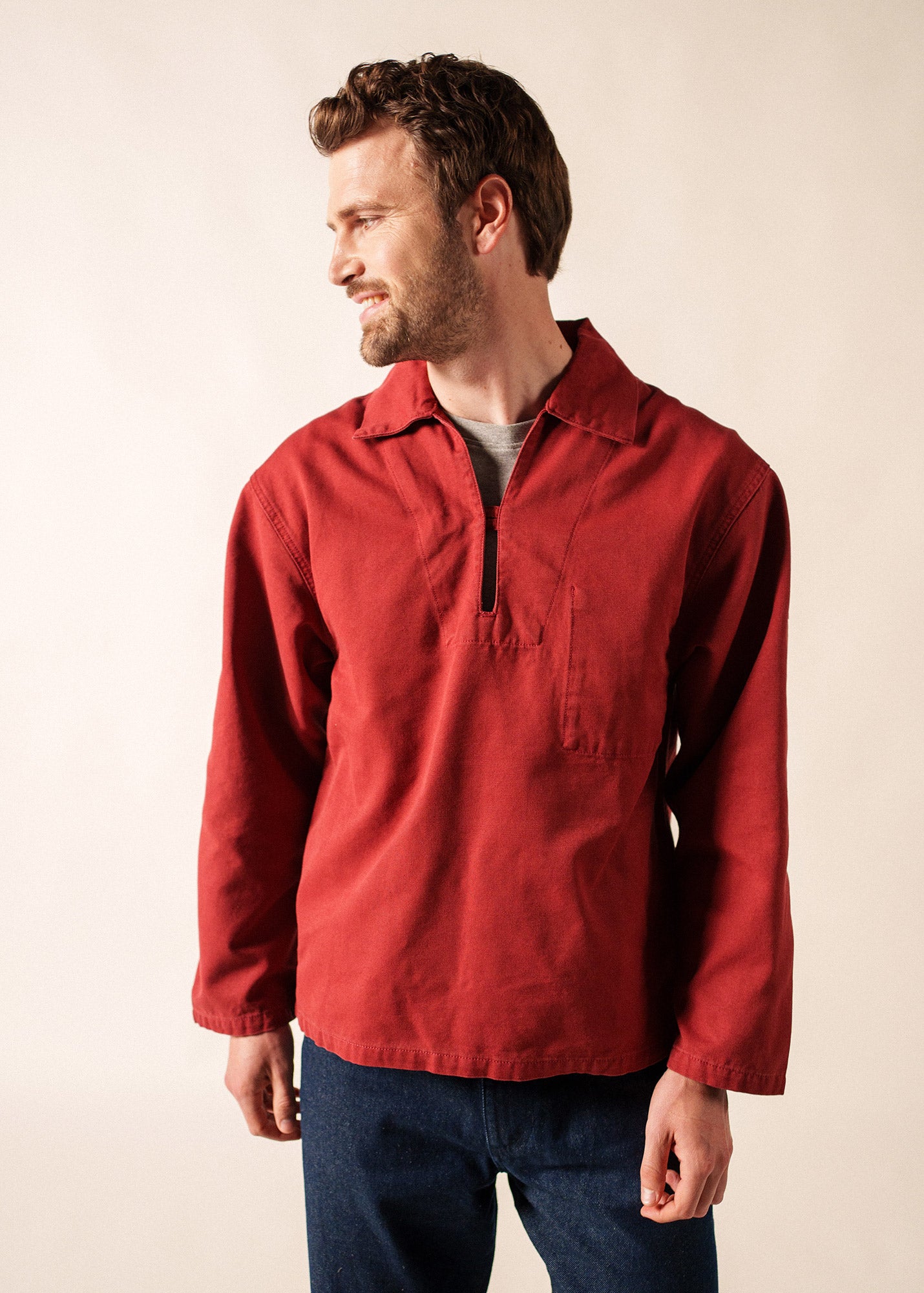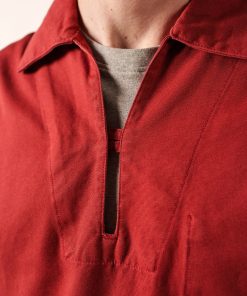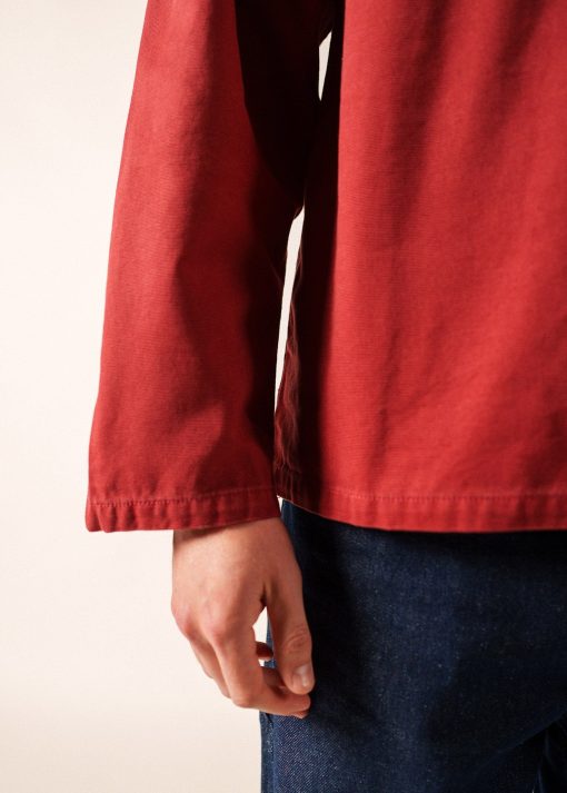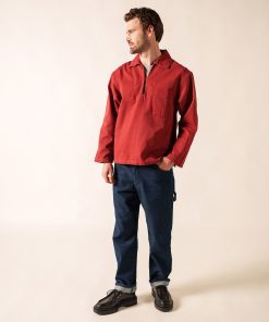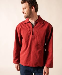Issue de la tradition de la mer, la vareuse est le vêtement des pêcheurs : une toile serrée, épaisse et robuste qui protège des intempéries et résiste aux travaux de manutention à bord, un bouton et une poche dissimulés à l’intérieur du vêtement pour ne pas être accrochés sur le bateau. Historiquement, le coloris brique était réservé aux pêcheurs utilisant des casiers et le bleu, au marins-pêcheurs du grand large. Pérennisée par sa simplicité, son authenticité et son intemporalité, le modèle s’adresse désormais au plus grand nombre.- Vareuse