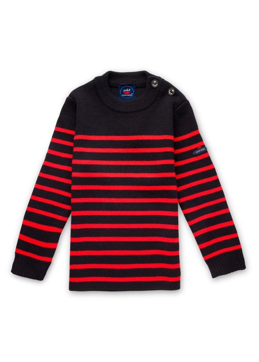 Saint James Pull Marin Rayé Enfant Moussaillon | Navy & Rouge | Enfant Men’s